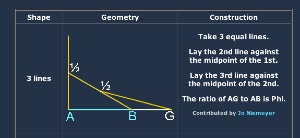 Goldener Schnitt mit Hilfe des rechten Winkels konstruiert http://www.partanen.de/c/1.html